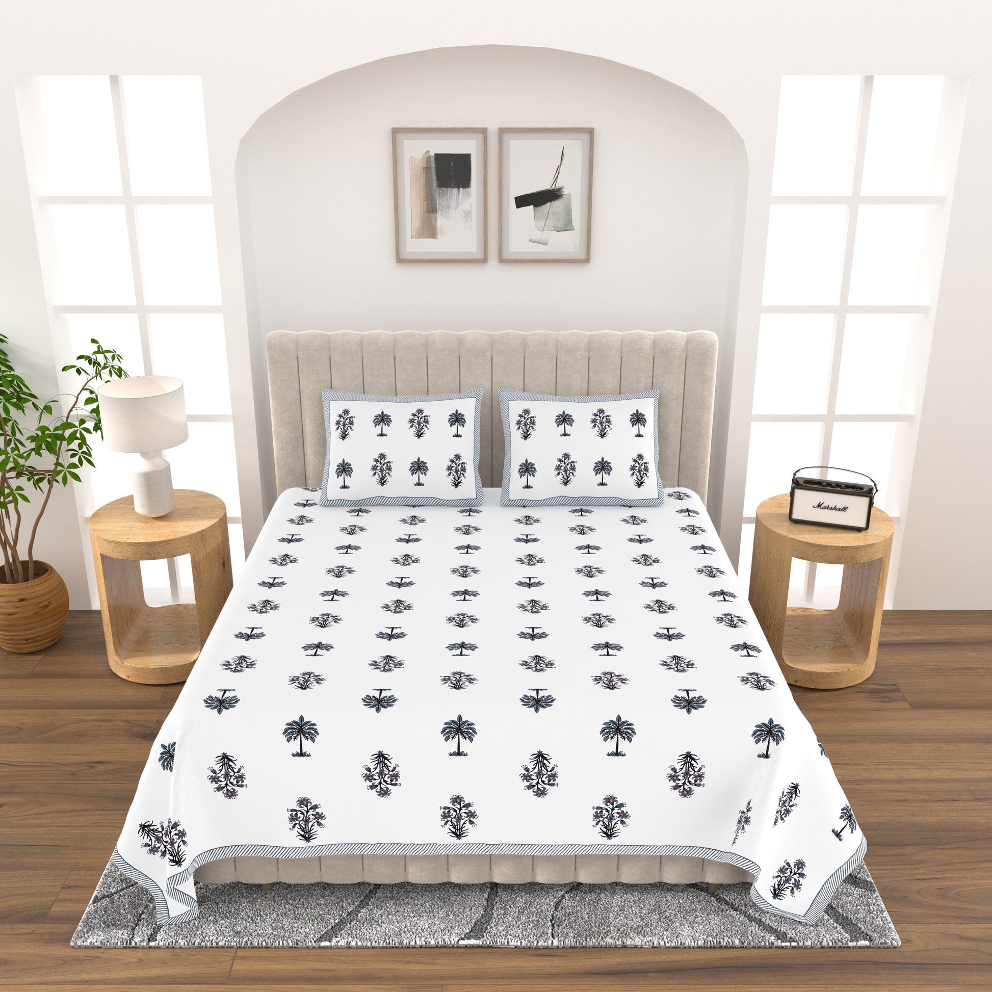 Transform your bedroom into a haven of comfort with our premium bedsheet, crafted to elevate your sleep experience. Made from 100% soft, breathable cotton, it offers a smooth finish and a gentle touch that soothes your skin.