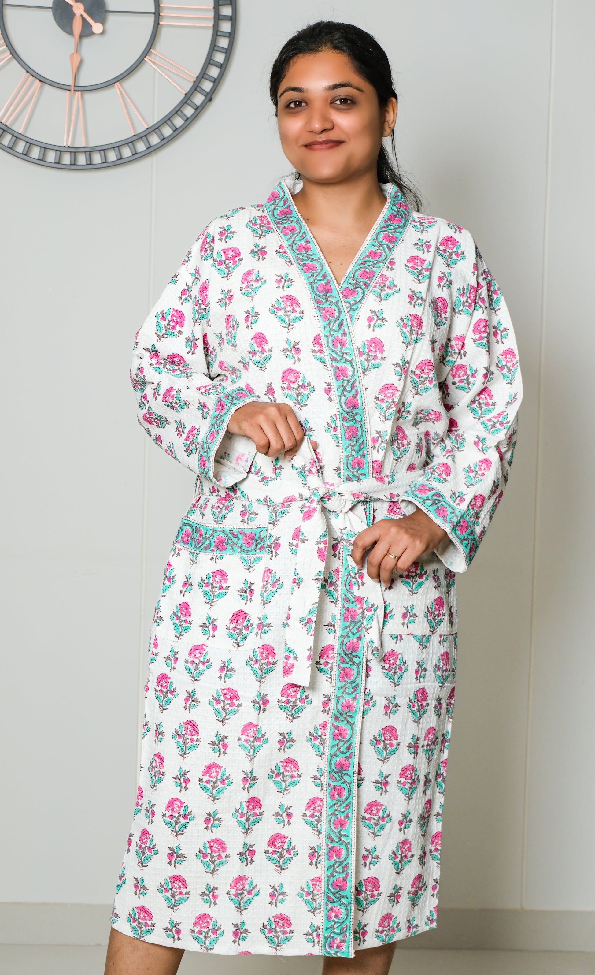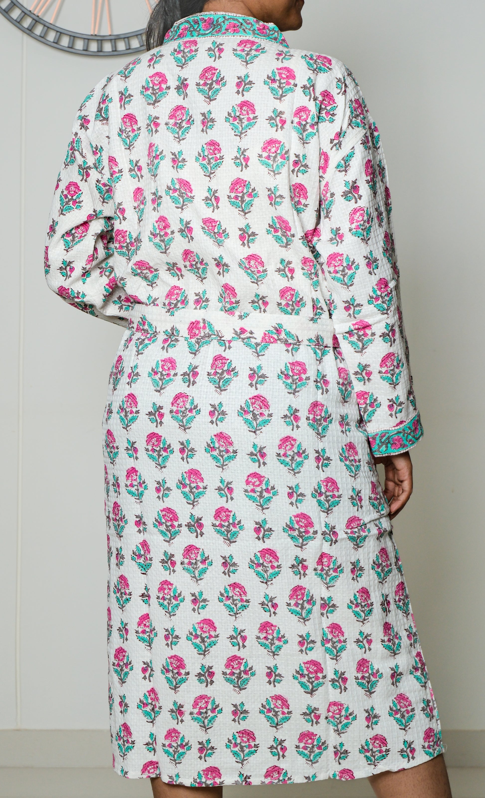 Each robe is hand-printed by skilled artisans in Jaipur, making every piece unique. Ideal for