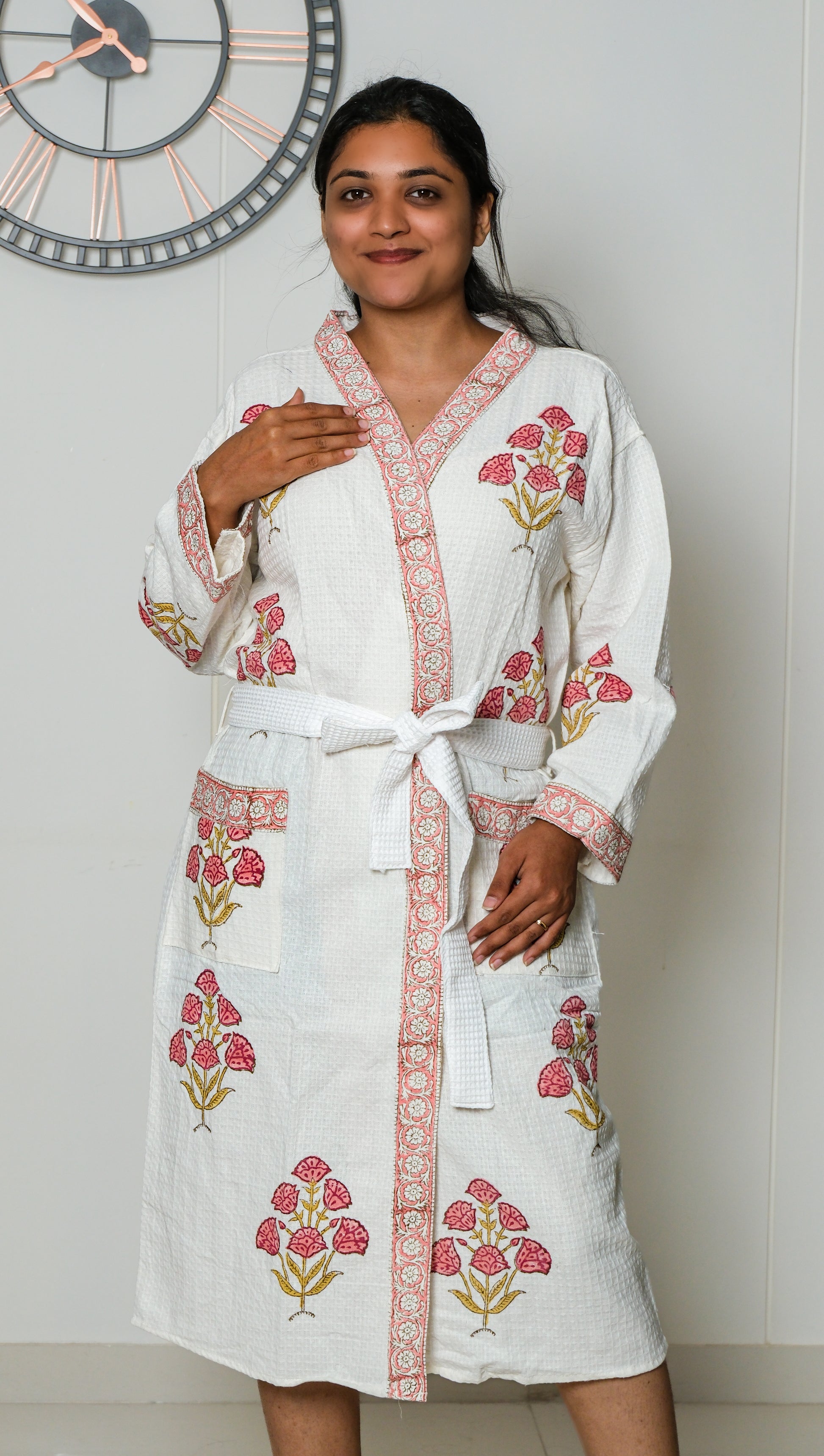 Each robe is hand-printed by skilled artisans in Jaipur, making every piece unique. Ideal for